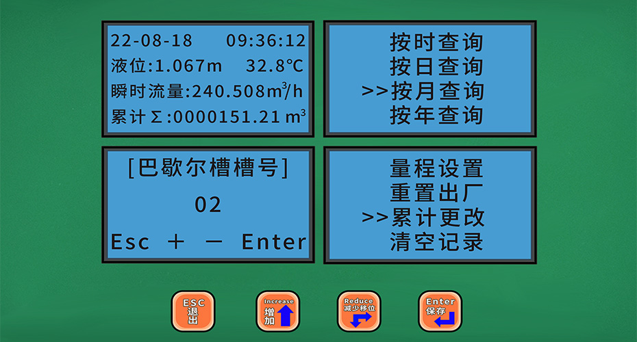 自帶LCD顯示瞬時流量、累計流量、液位、溫度 |